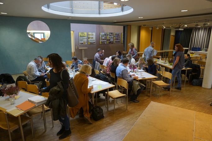 Währenddessen steigt der Geräuschpegel durch Lautsprache im Saal an.